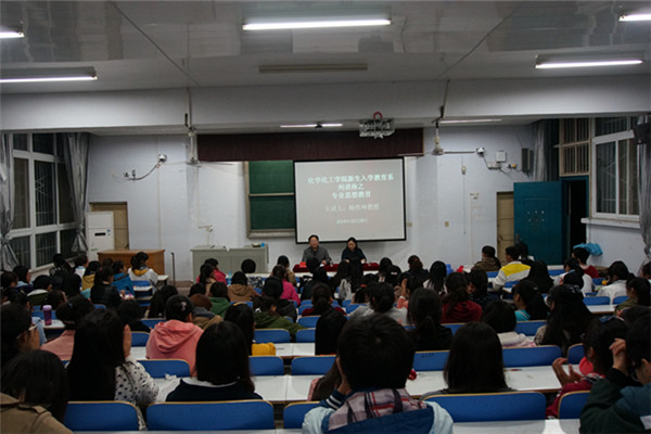 为了让14级新生更好的了解专业课程设置,尽快融入老员工活,10月29日晚太阳集团tyc151cc在教四梯一开展了新生专业思想教育座谈会。本次座谈会由太阳集团tyc151cc经理杨性坤主讲,辅导员李中杰主持,到场的有化学公司两个专业共计160余名新生。