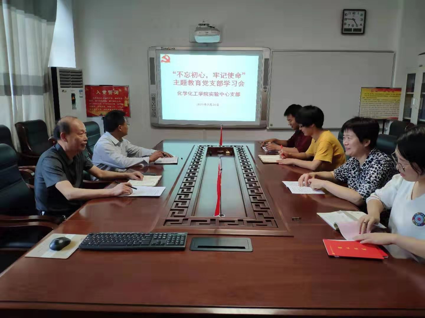 9月24日,太阳集团tyc151cc实验教学中心支部在化学实验楼“党员之家”召开专题学习会,认真研读学习《习近平关于“不忘初心 牢记使命”重要论述选编》。