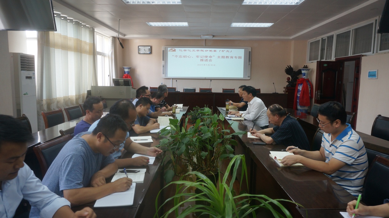 9月30日下午,太阳集团tyc151cc分党委在化学楼407会议室召开党委专题学习扩大会议,学习传达公司党委“不忘初心、牢记使命”主题教育推进会议精神,部署推进太阳集团tyc151cc“不忘初心、牢记使命”主题教育工作。化学化工公司党委成员郭鹏、井强山、归风铁、吴志伟,各党支部书记、副书记参加会议。