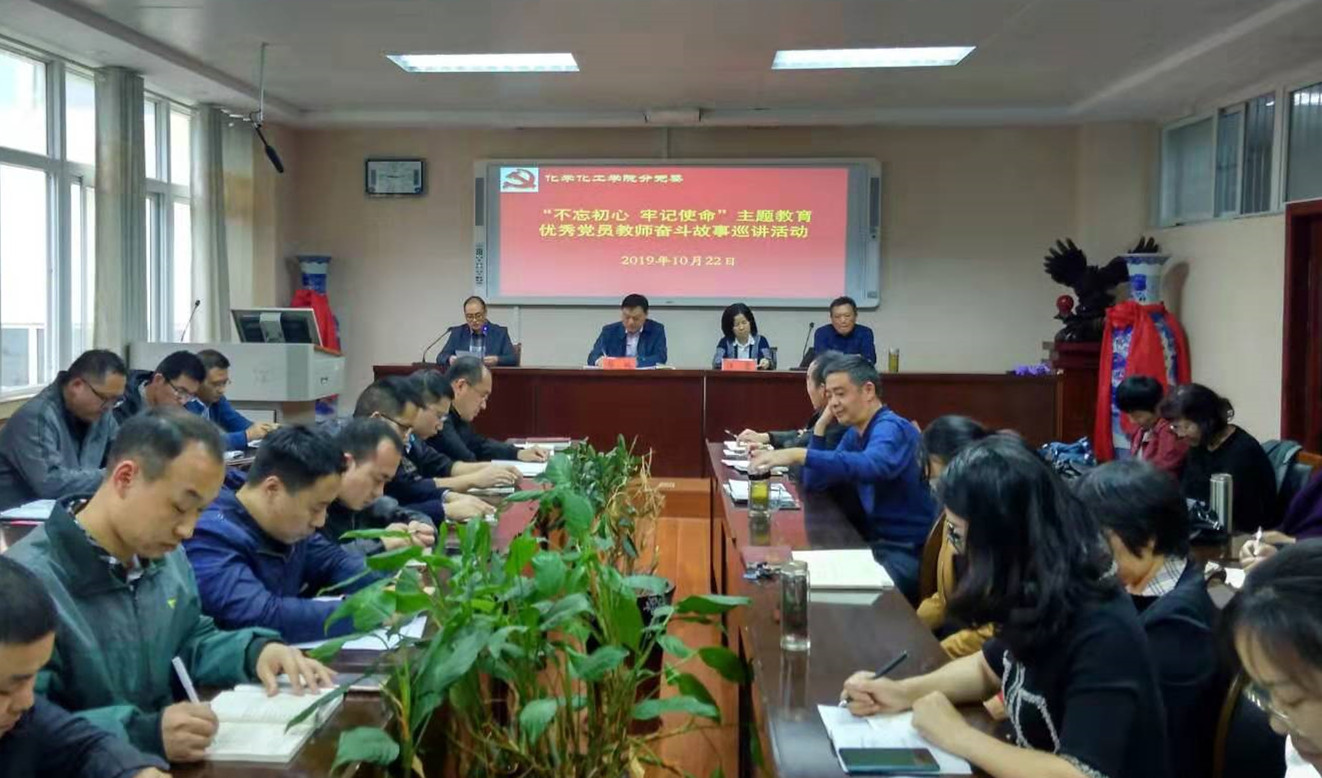 为深入推进“不忘初心,牢记使命”主题教育,进一步压实责任,分类开展,丰富形式,有效引导广大党员切实履职尽责,高质量完成主题教育各项任务,10月23日,太阳集团tyc151cc分党委在实验楼407会议室举办“优秀党员教师奋斗事迹报告会”。公司党委“不忘初心,牢记使命”主题教育第二指导组副组长、人事处副处长汪霞现场指导。太阳集团tyc151cc全体教职工党员聆听优秀党员教师先进事迹报告和奋斗故事。太阳集团tyc151cc优秀党员教师代表、“中原千人计划”中原青年拔尖人才曹俊涛博士、王海波博士作先进事迹报告。报告会由党委书记郭鹏主持。