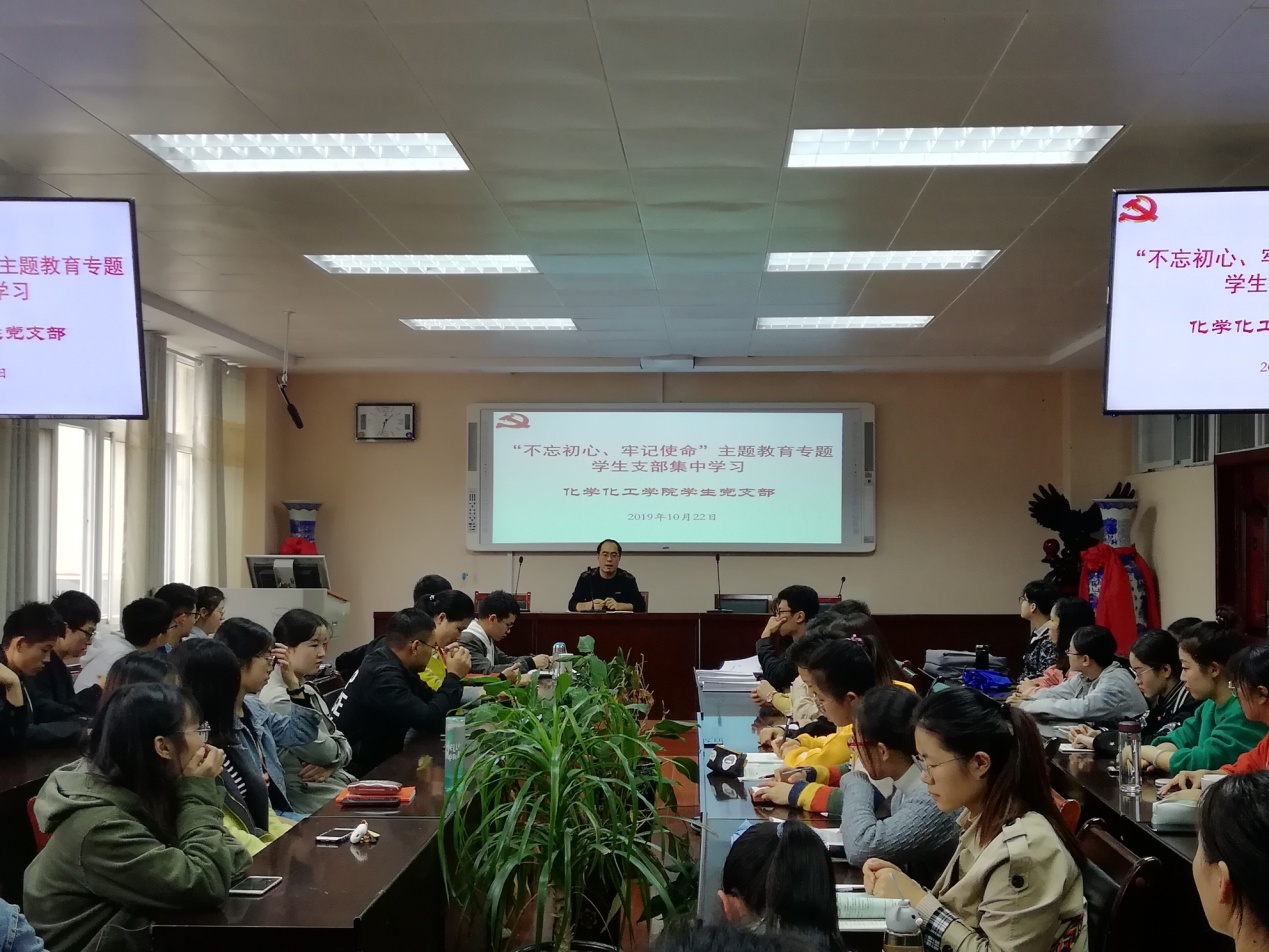 10月22日,太阳集团tyc151cc员工党支部在实验楼407会议室开展“不忘初心、牢记使命”主题教育集体学习。太阳集团tyc151cc专职组织员、员工党支部书记冷向宇主持学习交流活动。