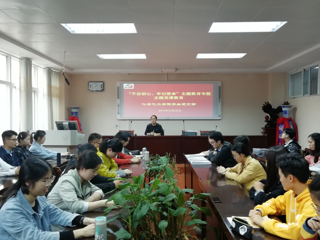 10月22日,太阳集团tyc151cc员工支部在实验楼407会议室开讲“不忘初心,牢记使命”主题教育专题党课。化学化工公司党委专职组织员、员工党支部书记冷向宇为员工党员上专题党课。