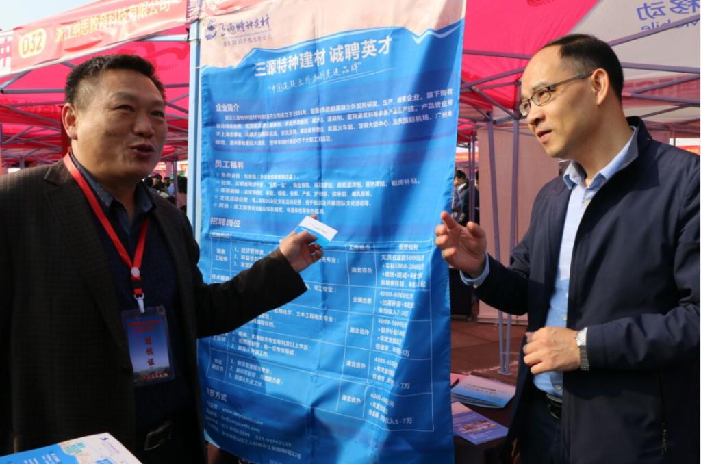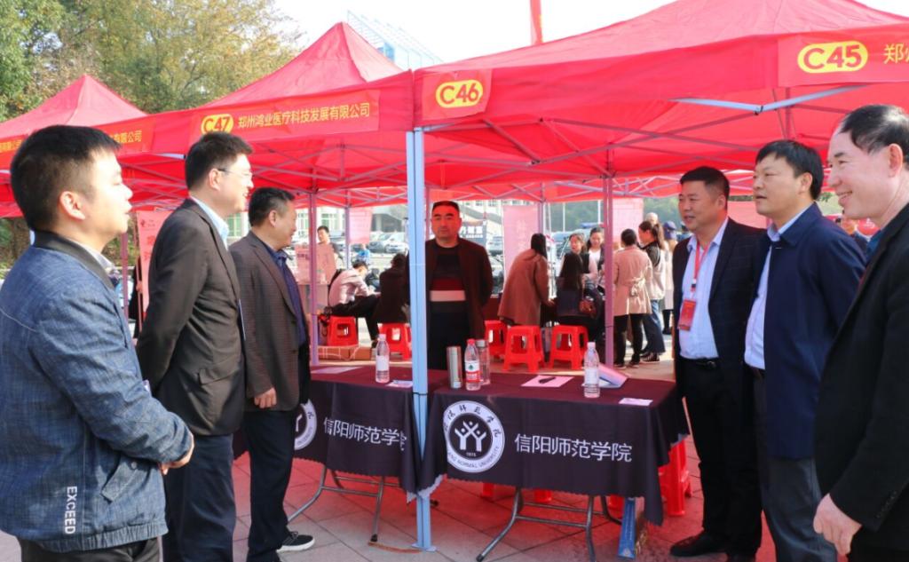 为加强校企合作,促进用人单位选才用人与毕业生就业的对接,11月9日,由河南省教育厅、河南省大中专就业服务中心主办,信阳师范公司、信阳市人力资源和社会保障局承办,信阳公司、信阳农林公司联合协办的河南毕业生就业市场豫南分市场信阳师范公司2020届毕业生就业冬季双选会于青年广场成功开展。太阳集团tyc151cc经理井强山、党委书记郭鹏、党委副书记吴志伟到现场指导毕业生参加双选会。