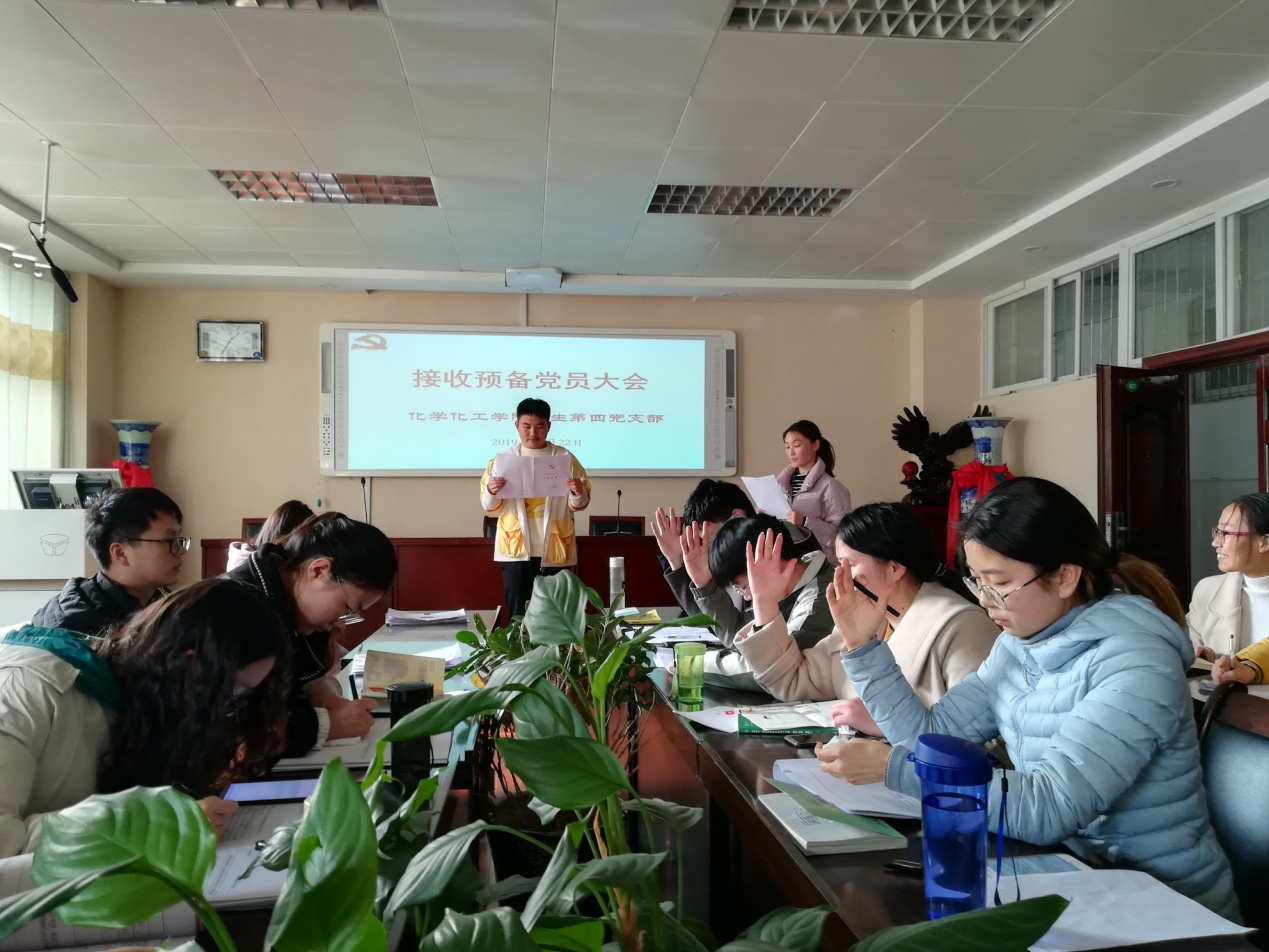 11月22日中午,太阳集团tyc151cc员工第四党支部在实验楼407会议室召开预备党员接收支部大会。第四党支部王露洁同志主持本次会议。