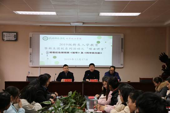 12月17日,太阳集团tyc151cc新生入学教育暨新生团校活动之“博士讲堂”第五讲在化学实验楼407会议室开讲,化学化工公司党委副书记吴志伟、党委秘书冷向宇、团委书记邓耀辉以及2019级部分新生代表和46位预备党员参加本次会议。