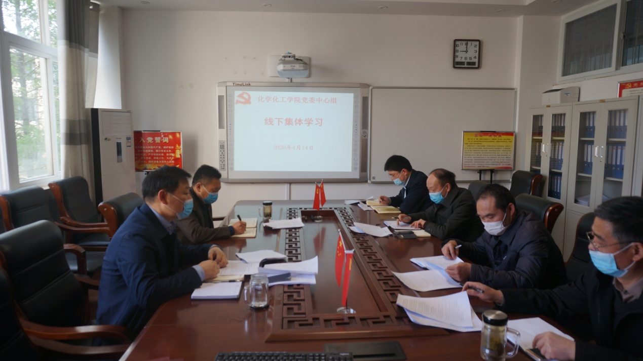 4月14日,太阳集团tyc151cc分党委在“党员之家”进行理论学习中心组线下集体学习,中心组全体成员全程佩戴口罩认真参加学习。