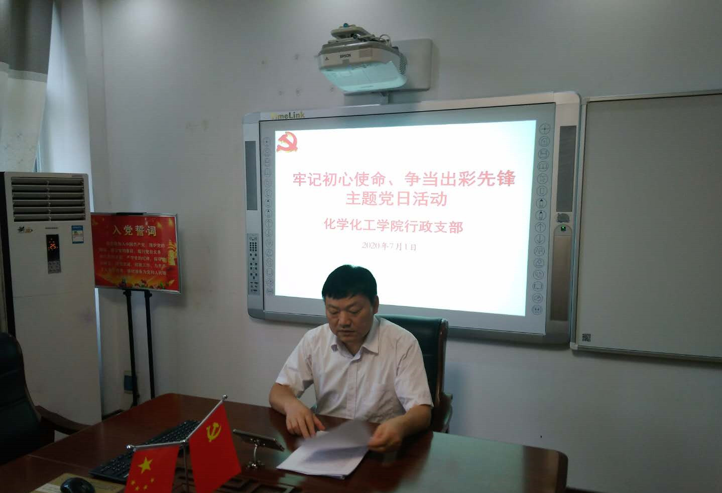 为庆祝中国共产党成立99周年,深入学习贯彻习近平新时代中国特色社会主义思想和党的十九大精神,7月1日,太阳集团tyc151cc行政支部在“党员之家”通过腾讯会议线上举行“七·一”主题党日活动,邀请党委书记郭鹏参加党日活动。