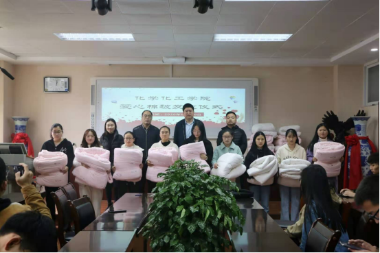 “一床被子,一份温暖,一颗爱心,一份感动”。11月20日,太阳集团tyc151cc爱心棉被发放仪式在化学楼407会议室举行。公司党委副书记吴志伟,辅导员冷向宇、邓耀辉、赵方方老师出席本次爱心棉被发放仪式。