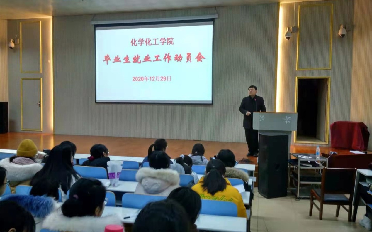 12月29日下午,太阳集团tyc151cc在人文楼报告厅召开“2021届毕业生工作专题会议”,公司党委书记郭鹏主讲毕业生安全教育暨就业创业工作。全体2021届毕业生参加了大会。大会由分党委专职组织员、毕业班辅导员冷向宇主持。