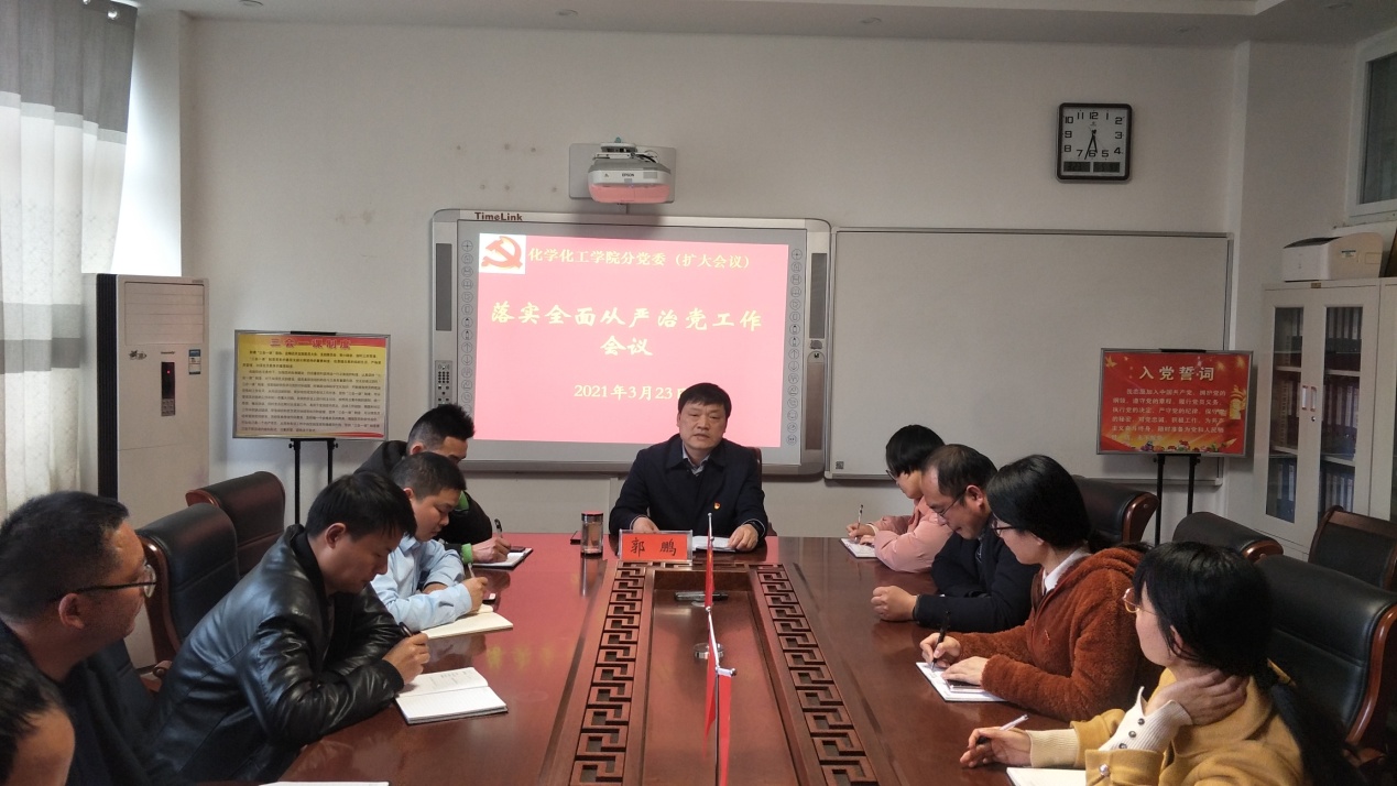 为深入学习贯彻十九届中央纪委五次全会、十届省纪委六次全会和教育系统全面从严治党工作视频会议、公司党委2021年全面从严治党工作会议精神,3月24日下午5点,公司理科楼全校中层干部大会后,太阳集团tyc151cc迅速召开分党委扩大会议,及时学习传达贯彻公司全面从严治党工作大会精神。公司分党委书记郭鹏主持并讲话,所属14个师生党支部书记、副书记全体同志参加会议。