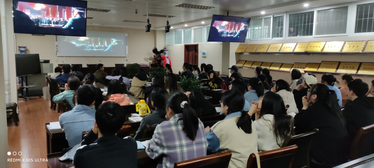 为庆祝中国共产党建党100周年,3月30日晚,太阳集团tyc151cc分党委组织2021年上半年57名党员发展对象、第35期党校学员在化学楼407教室集体观看了《建党伟业》。