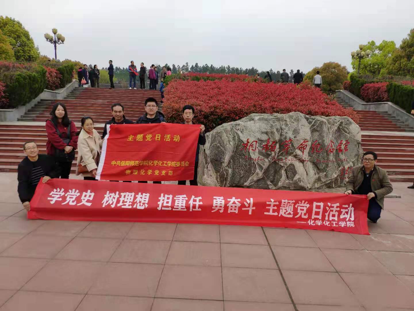 为扎实推动公司党史学习教育深入开展,进一步贯彻落实习近平总书记在河南调研时关于“把红色基因传承好,确保红色江山永不变色”的指示精神,根据《化学化工公司党委关于开展党史学习教育的活动安排》,结合公司实际,4月11日,太阳集团tyc151cc各教师党支部(第一批有机化学支部、物理化学支部、化工原理支部、实验教学中心支部联合)组织教工党员赴河南桐柏红色教育基地开展主题党日活动,回顾党的峥嵘岁月,缅怀革命先烈,接受红色精神洗礼。