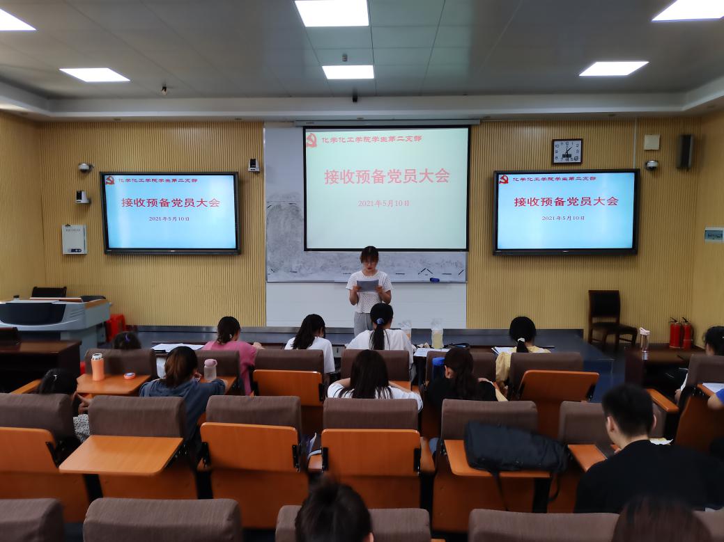 5月10日中午,太阳集团tyc151cc员工第二党支部在教四T2召开接收预备党员支部大会。第二党支部李梦瑶同志主持本次会议。