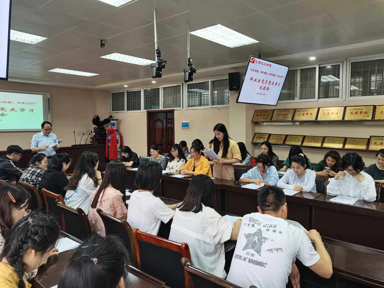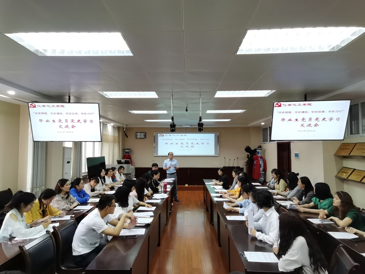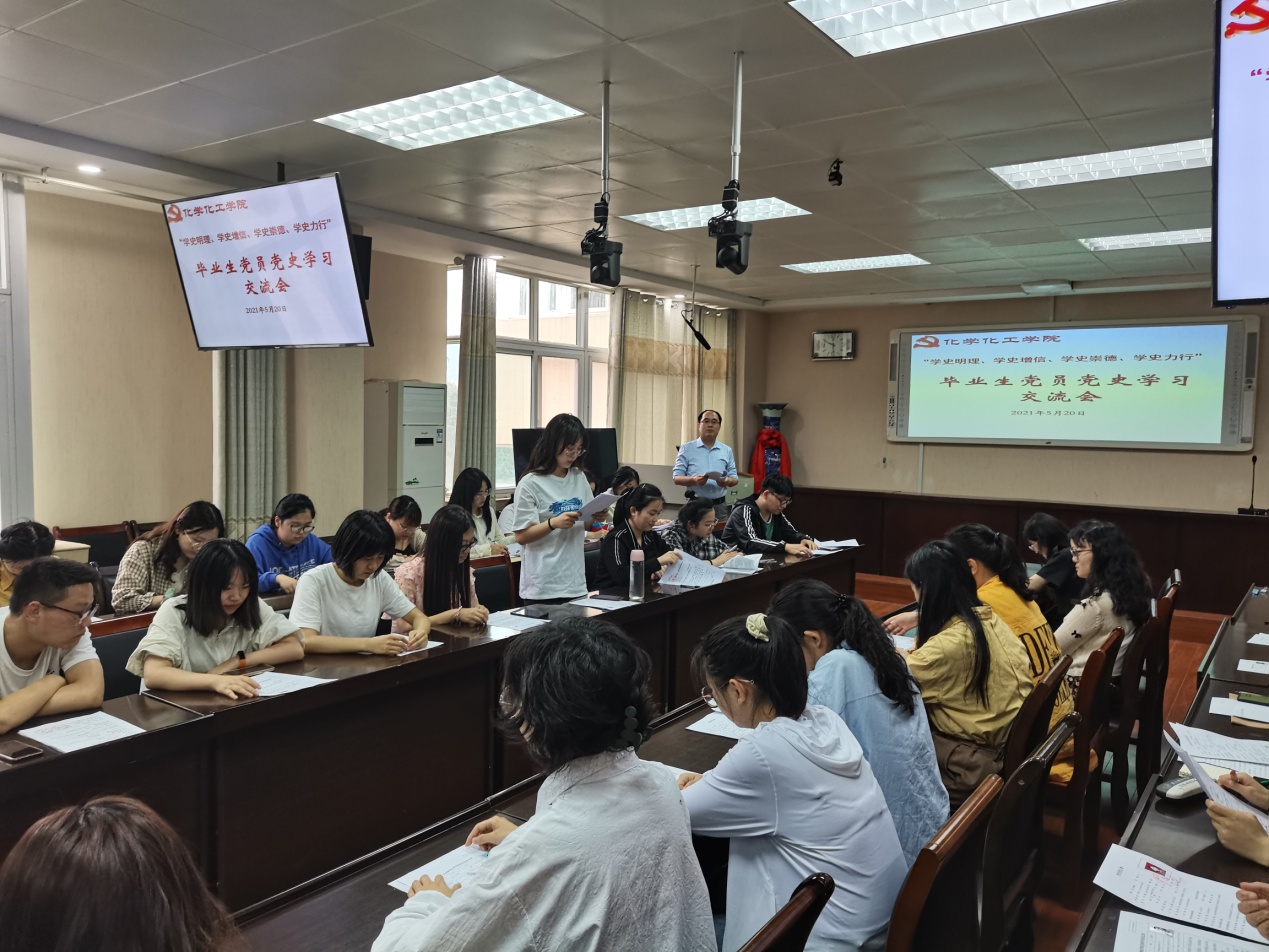 5月20日下午,太阳集团tyc151cc2021届毕业生党员在实验楼举行“学史明理、学史增信、学史崇德、学史力行”党史学习交流会,交流学习《中国共产党简史》心得体会。学习交流会由分党委专职组织员冷向宇主持。