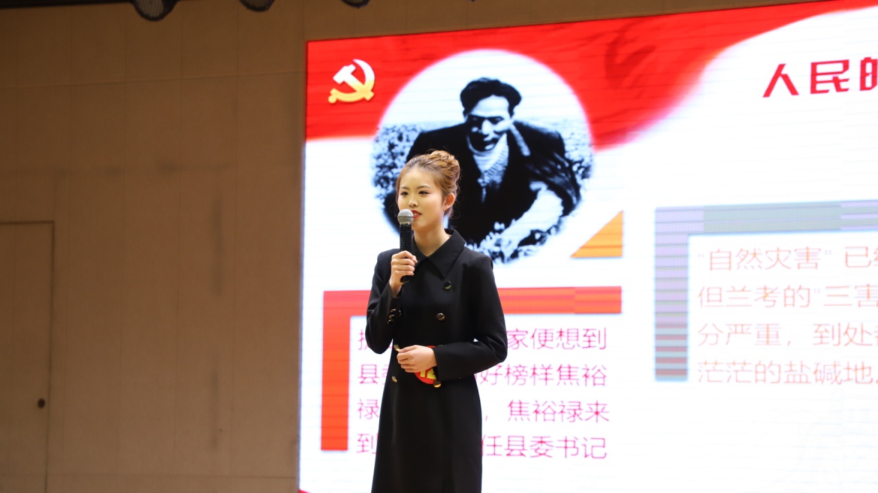 在决赛现场,陈高燕讲述的微党课题目是“讲好党史故事,传承红色基因”。她声情并茂来地讲述兰考县委书记焦裕禄为兰考人民付出地巨大努力、艰苦奋斗的英雄事迹,感动现场,加深了聆听者对中国共产党矢志不渝为中国人民谋幸福、为中华民族谋复兴的初心使命认知。习近平总书记曾在追思焦裕禄中写道,路漫漫其修远已,两袖清风来去,为官一任,造福一方,遂了平生意。微党课再次号召新时代的青年学子,要以焦裕禄书记为楷模,不忘初心,牢记使命,讲好党史故事,讲好中国故事,向世界传递中国声音。