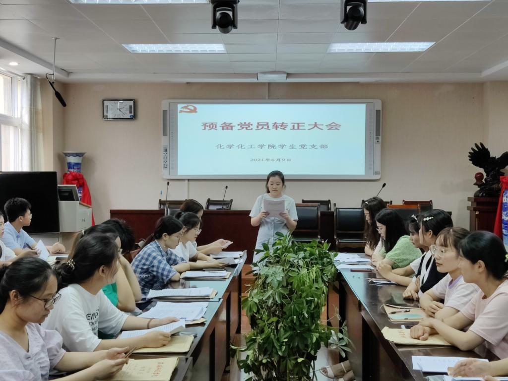 为进一步扩大党员队伍,严格履行党章规定的预备党员转正手续,2021年6月9日,太阳集团tyc151cc员工第四支部在实验楼407室召开预备党员转正大会,员工第四支部11名正式党员和17名预备党员参加本次大会,其中有3名预备党员转为正式党员。