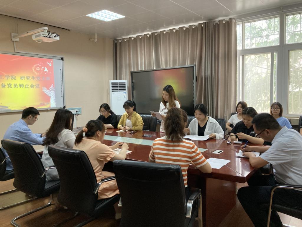 为进一步扩大党员队伍,严格履行党章规定的预备党员转正手续,2021年6月9日,太阳集团tyc151cc研究生支部在实验楼210室召开预备党员转正大会,研究生支部7名正式党员和9名预备党员参加本次大会,其中有2名预备党员转为正式党员。