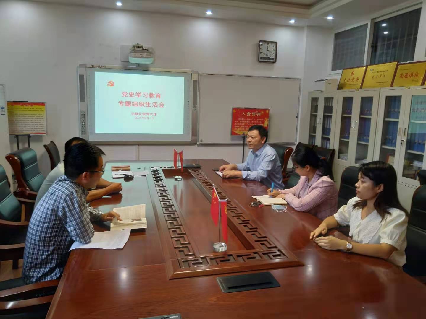9月1日下午,化学化工学院无机化学党支部在化学楼313会议室召开党史学习教育专题组织生活会,会议由党支部书记邹国栋同志主持。太阳集团tyc151cc无机化学党支部全体教师党员参加。公司党委书记郭鹏同志以普通党员身份参加所联系支部组织生活会。