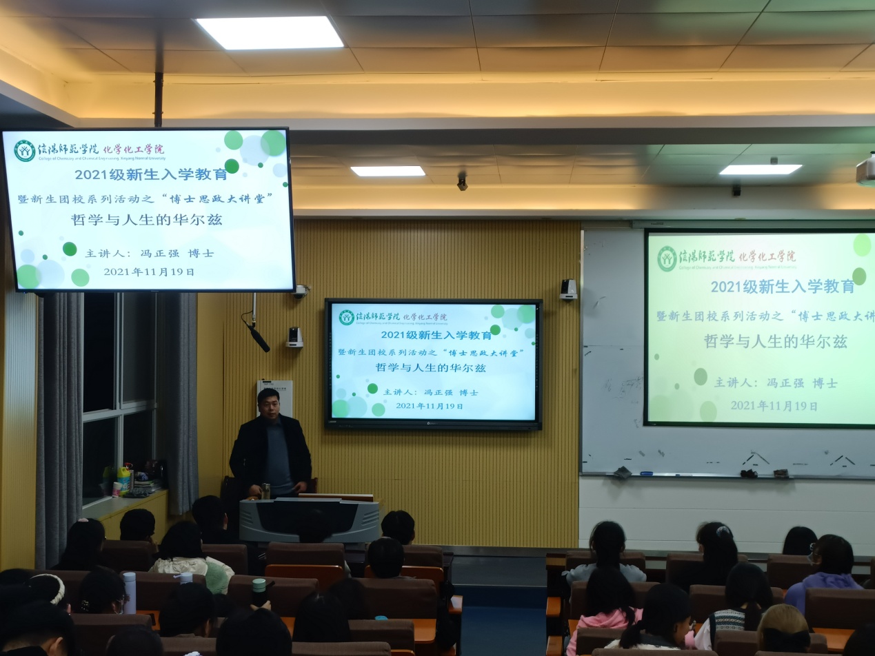 为确保2021级新生顺利融入老员工活,提高学习热情。11月19日,太阳集团tyc151cc“博士思政大讲堂”邀请冯正强博士开讲,2021级化学1、2班参加专题讲座。