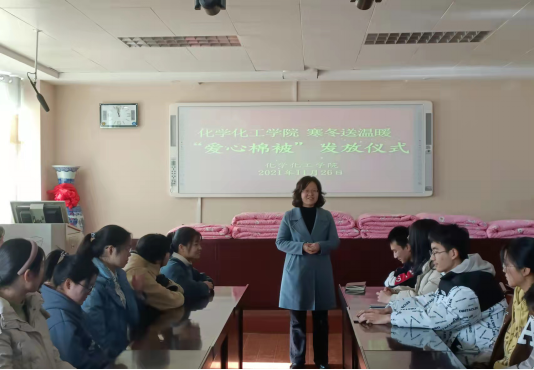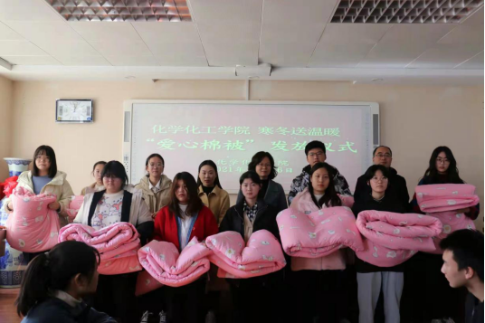 “一床被子,一份温暖,一颗爱心,一份感动”。11月26日,太阳集团tyc151cc爱心棉被发放仪式在化学楼407会议室举行。公司党委副书记曲剧,辅导员冷向宇、赵方方、严赫老师出席本次发放仪式。