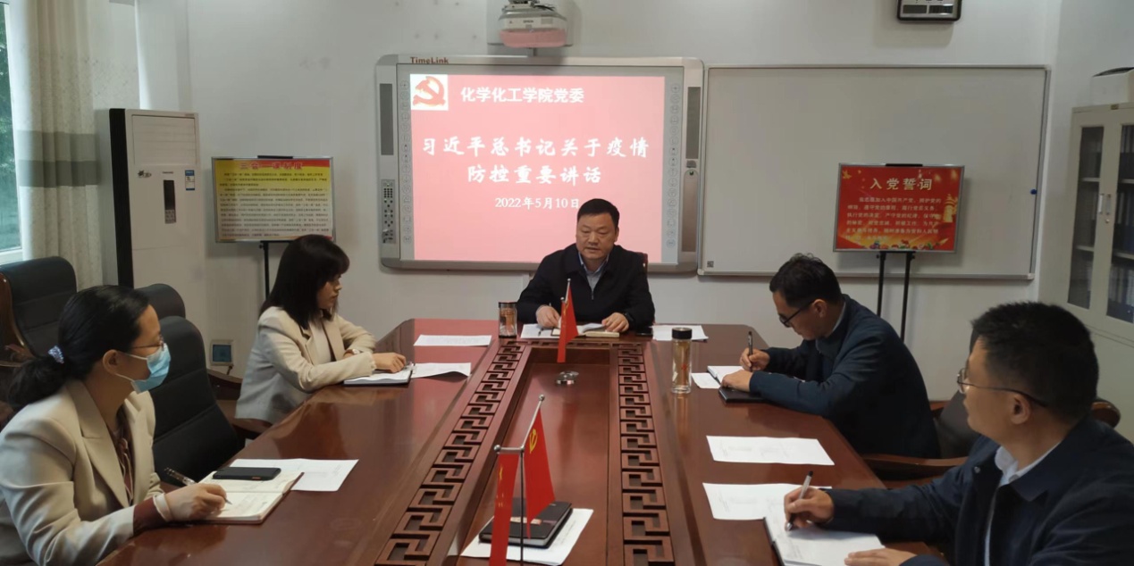 5月10日,化学化工公司党委在实验楼“党员之家”召开疫情防控工作专题会议,化学化工公司党委成员参加会议。会议由党委书记郭鹏主持。