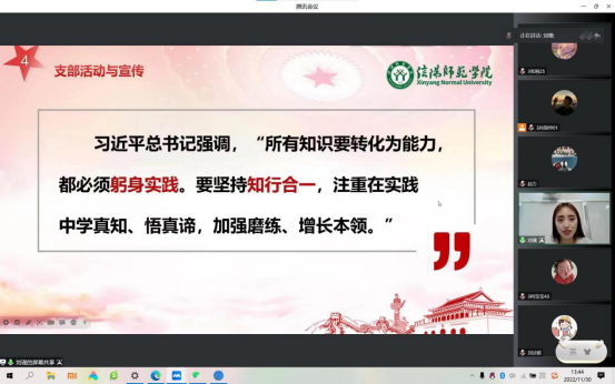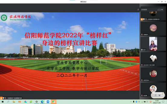 “不让一个员工因家庭经济困难而失学”是党和政府的庄严承诺,为全面落实国家资助政策,进一步拓展员工资助工作的育人功能,充分发挥国家奖学金获得者、校园明星、自强之星等青年榜样的先进典型导向作用。11月30日,太阳集团tyc151cc、数学与统计公司以线上腾讯会议的形式开展“榜样红——身边的榜样”宣讲活动,活动由太阳集团tyc151cc资助专员赵方方老师主持,数学与统计公司资助专员杨帆老师、优秀员工代刘珊、薛颖珊、张豪鹏及部分太阳集团tyc151cc、数学与统计公司员工共同参与。