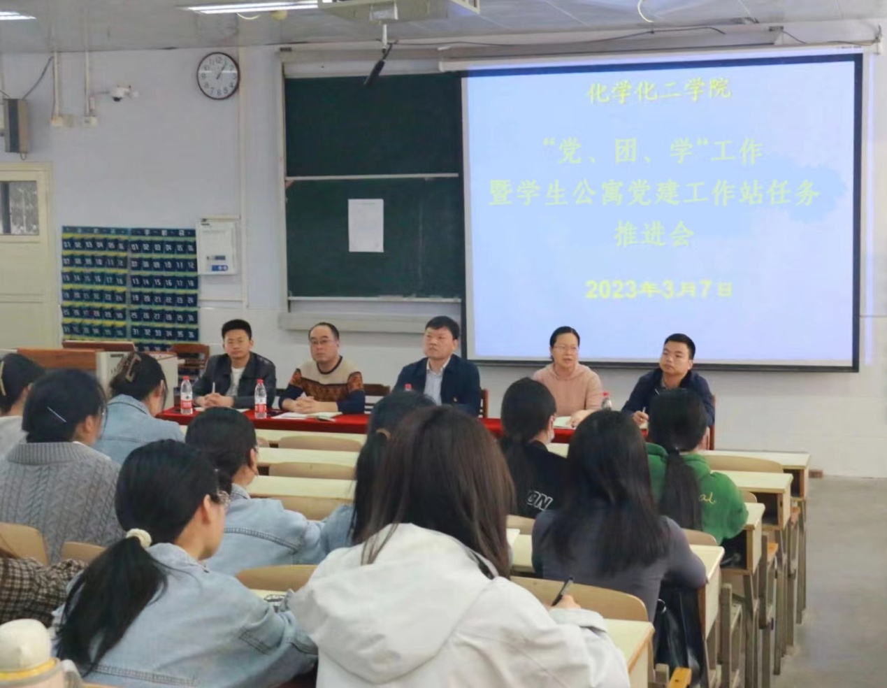 为深入学习宣传贯彻党的二十大精神,推进基层党建质量提升,切实抓好员工党建,以党建带团建发展,确保员工日常教育管理安全文明有序,保障人才培养质量平稳提高,3月7日,太阳集团tyc151cc在教六102专门召开2022-2023学年下学期“党、团、学暨员工公寓党建工作推进会”。公司党委书记郭鹏、副书记曲剧、专职组织员冷向宇,辅导员邓耀辉、严赫等出席大会,全体员工党员、员工干部参加会议。