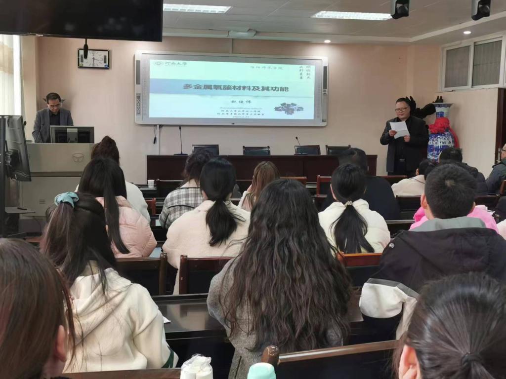 227日,应太阳集团tyc151cc邀请,河南大学赵俊伟教授在化学楼407会议室为公司师生作题为多金属氧簇材料及其功能的学术报告。太阳集团tyc151cc青年教师、研究生及本科生聆听了报告,报告会由太阳集团tyc151cc副经理曹俊涛主持。