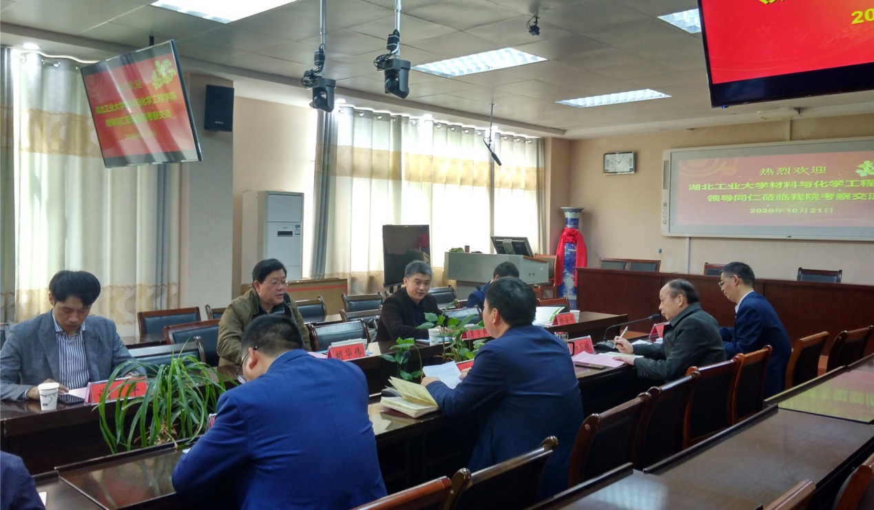 湖北工业大学材料与化学工程公司党委书记胡华伟、经理李学锋等介绍了湖北工业大学基本情况、材料与化学工程公司的发展现状,重点介绍了材料与化学工程公司教学、科研、旗下产业、研究生招生培养工作。