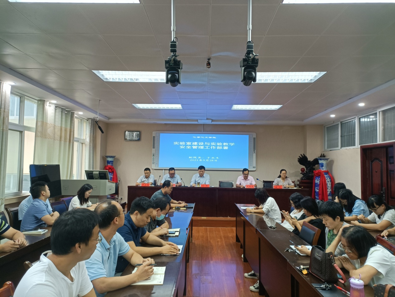 2021秋季新学期线下顺利开学,为保障化学实验室安全运行,顺利开展实验教学工作,9月28日,太阳集团tyc151cc在实验楼407会议室专门召开实验室安全管理专题会议,重点部署教学、科研实验室安全检查与日常管理工作。专题会由公司党委书记郭鹏主持。