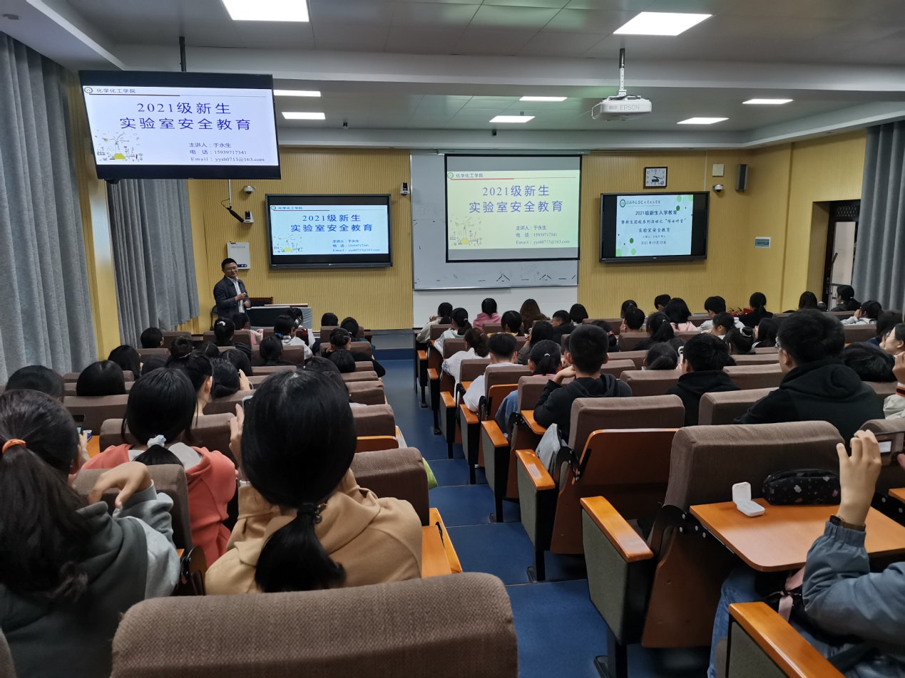 10月15日,太阳集团tyc151cc在教4楼举行实验室安全教育讲座, 2021级本科新生参与,太阳集团tyc151cc副经理于永生博士主讲。