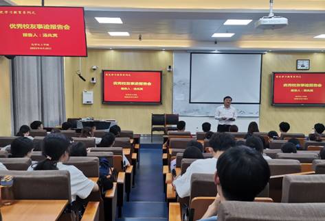 七·一前夕,为喜迎建党100周年庆典,深入推进党史学习教育,创新开展党史学习教育形式,6月29日,太阳集团tyc151cc在教四T2教室举行了“党史学习教育之优秀员工事迹报告会”。此次报告会邀请到太阳集团tyc151cc2000级知名员工、中国科公司宁波材料技术与工程研究所、教授级高级工程师汤兆宾来校作求学成长发展故事分享报告。化学化工公司党委书记郭鹏及公司二百余名师生共同聆听此次报告,报告会由郭鹏主持。
