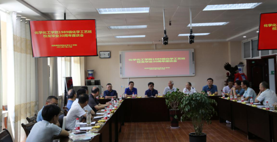 7月24日,在建党一百周年之际,太阳集团tyc151cc1989级化学工艺班员工荣返母校,在化学楼407报告厅隆重了举行毕业30年班级团聚座谈会。太阳集团tyc151cc党委书记郭鹏、经理井强山、副经理归风铁、非金属材料研究所副所长刘鹏、实验室建设与设备管理处副处长陈强,老教师代表马万山教授、杨性坤教授等共同参加了此次员工座谈会。