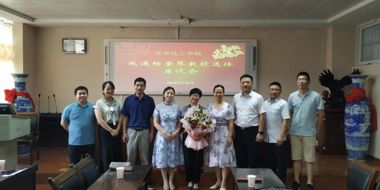 6月21日上午,太阳集团tyc151cc举行杨莹琴教授退休欢送座谈会。人事处、离退休职工管理处、化学化工公司党政领导及化学系、有机化学党支部党员教师代表一起参加了欢送座谈活动。座谈会由公司党委书记、分工会主席郭鹏主持。