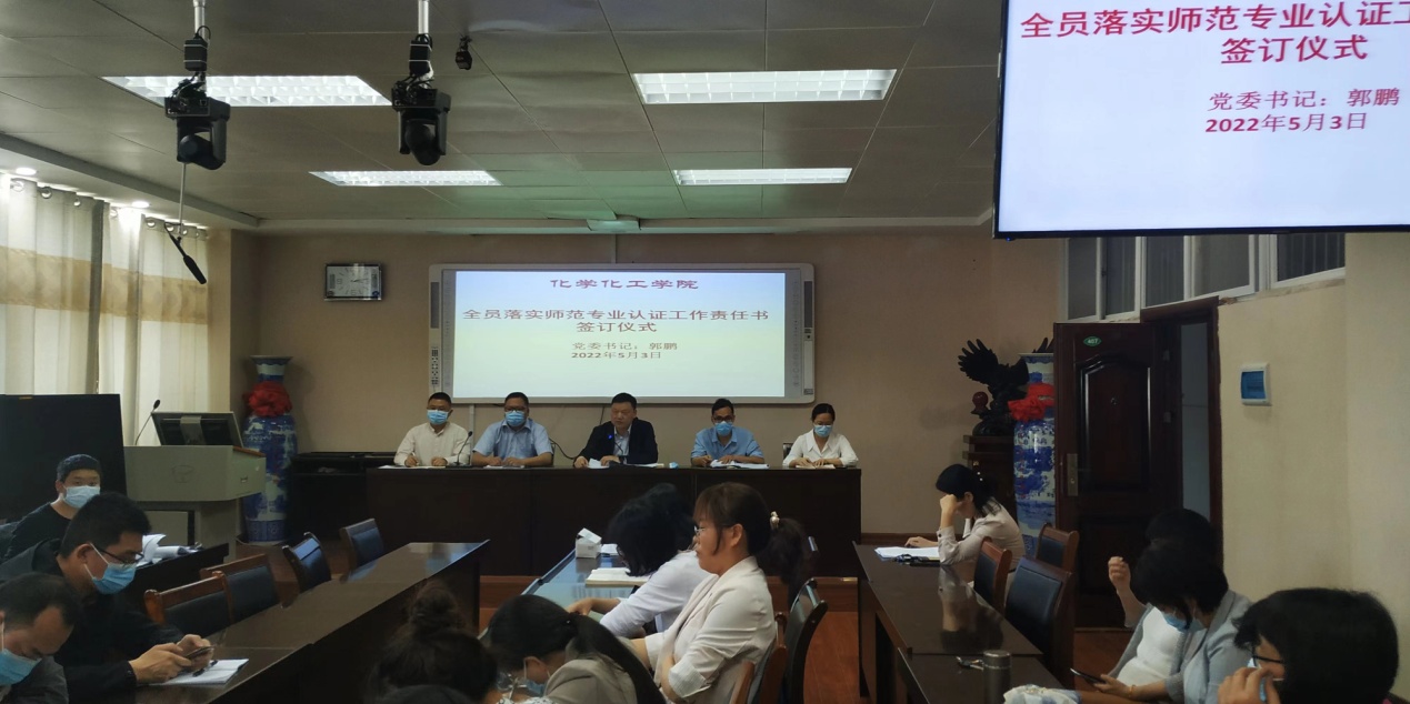 为进一步推进落实化学师范专业认证工作各项目标任务,全面提高全体教师的责任意识,5月3日,在化学楼407会议室,太阳集团tyc151cc隆重举行了《全员落实师范专业认证工作任务责任状》签订仪式,公司全体教职员工集体参加,现场签订。公司党委书记郭鹏主持《责任状》签订仪式。