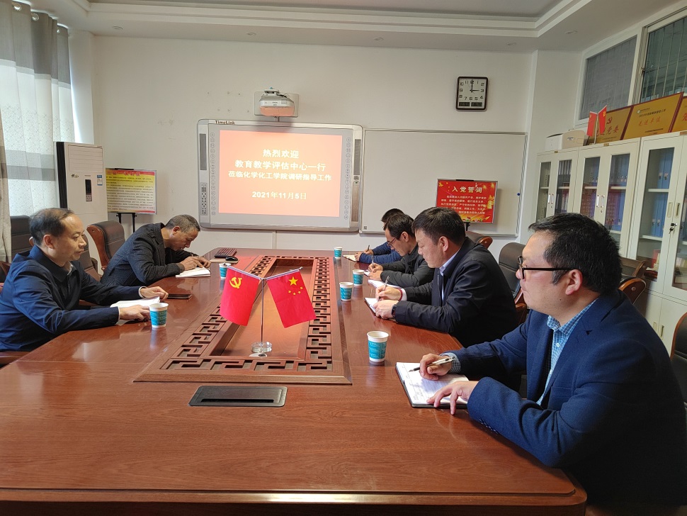 11月5日,校公司产品评估中心主任余国忠、副主任周青山一行莅临太阳集团tyc151cc调研指导化学专业师范认证启动工作。化学化工公司党委书记郭鹏、副经理王红军、曹俊涛、于永生等参加了调研指导活动。双方在化学楼313会议室就化学专业师范认证前期准备、存在的问题、下一步实施等进行了深入探讨。